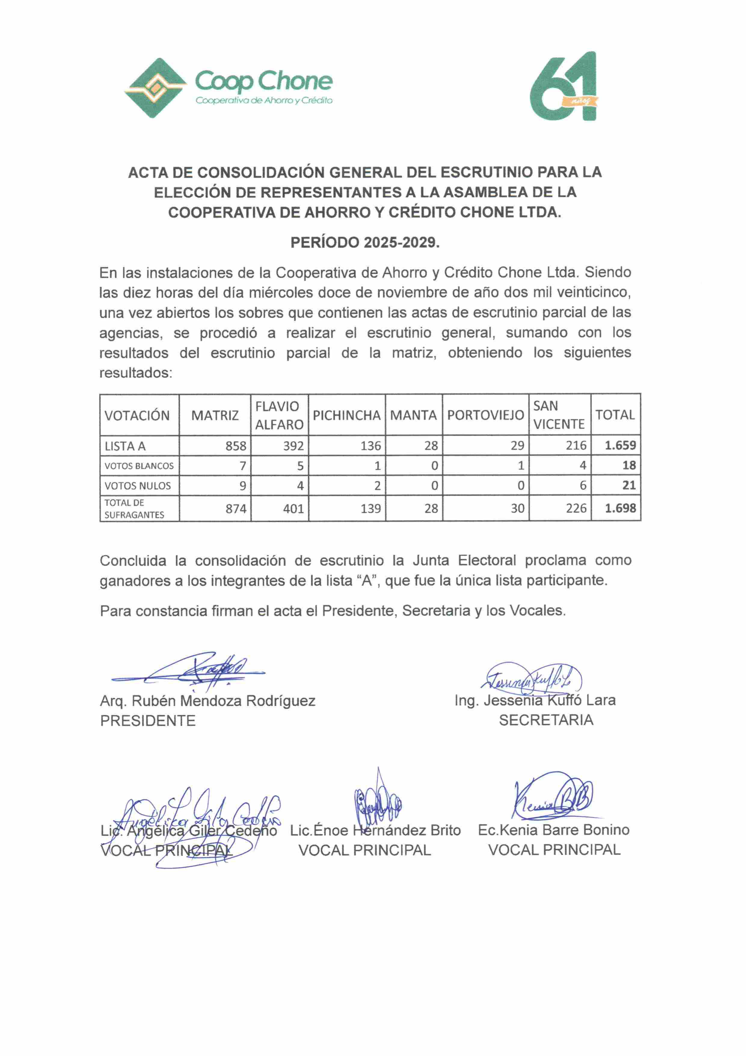 "Antes de recibir el crédito de la Cooperativa Chone tenía otra unidad que pasaba tiempo en el taller debido a sus años. Ahora brindo un buen servicio a la comunidad chonense en una unidad nueva y cómoda."